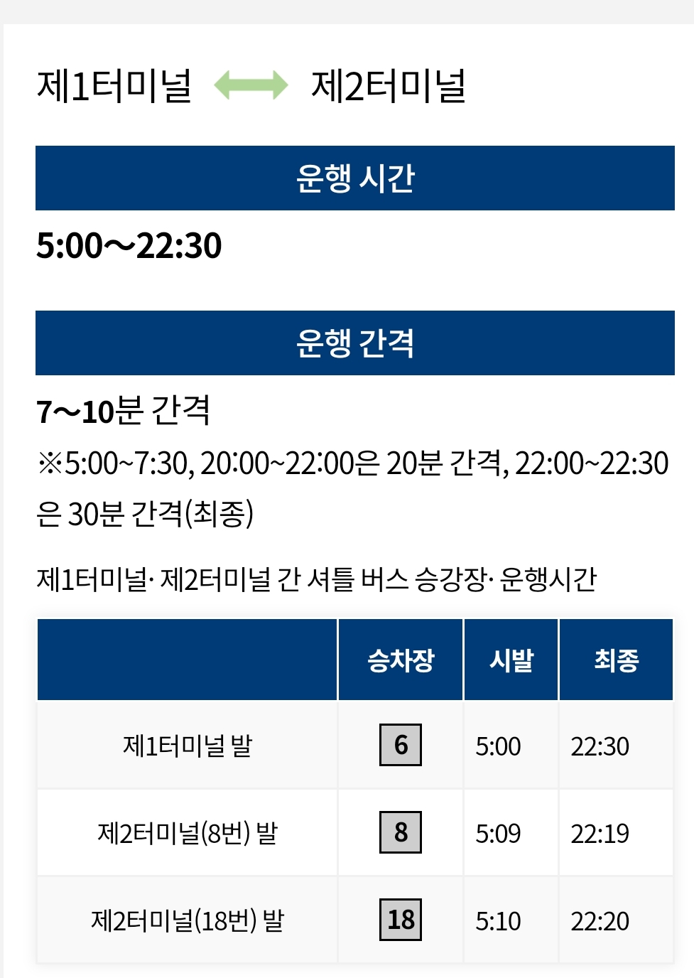 제2터미널 - 제3터미널보단 시간 간격이 길어요!